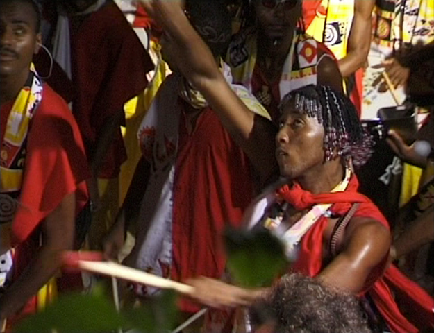Die afrobrasilianische Trommel-Tanz-Gruppe von Marcio Meirelles vereinigt Musiker und Tänzer der verschiedenen "Schulen". Die Mitglieder der Gruppe wollen die starke Erdbindung der Ureinwohner Brasiliens darstellen. Ihnen selbst, als Nachkommen der afrikanischen Sklaven, die über drei Jahrhunderte als "schwarzes Elfenbein" gehandelt wurden, ist es ein Ideal, in Harmonie mit der Erde zu leben. Der Afrikaner brachte ja seine Heimat mit nach Brasilien. Auch er strebt danach im Rhythmus der Erde mitzu-schwingen. Deswegen kennt er keinen Fortschrittswillen, der den Ur-Rhythmus ändern sollte.