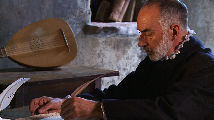Um grupo de vozes masculinas executa as músicas, a doze, a seis, a cinco ou a quatro vozes. Os solistas não são filmados de maneira fixa no espaço das igrejas e dos outros lugares de ação, mas são eles os "atores", núcleo/centro e ao mesmo tempo elemento unificante do filme. Um corpo ressonante onde cada voz é, entretanto, independente das outras. O grupo faz o comentário acústico à biografia deste grande mestre, através de algumas das obras mais famosas, mas também de composições menos conhecidas.